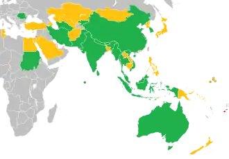 The Asia-Pacific Broadcasting Union (ABU) had already run an international song contest for its members inspired by the Eurovision Song Contest in 1985 – 1987, called the ABU Popular Song Contest, with 14 countries of the Asia-Pacific region competing.[3] The show had a similar concept to the current radio song festival with winners being chosen by a professional jury. South Korea, New Zealand and Australia celebrated victories in this competition. In 1989 – 1991 ABU co-produced the ABU Golden Kite World Song Festival in Malaysia with participation of Asia-Pacific countries, as well as Yugoslavia and Finland.[3]