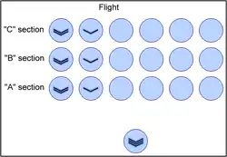 When assembled as a Flight, each horizontal line of 6 cadets is known as a "rank". The 3 "ranks" are referred to as 'A', 'B' and 'C' sections, with 'A' section forming the front rank, 'B' section in the middle rank, and 'C' section at the rear. Each vertical line of cadets is known as a file. Each file is associated a number. (1 through 6 numbered from Sergeant's left)