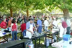 Foundation Day, as it was known at the time, continued to be officially celebrated in New South Wales, and in doing so became connected with sporting events.[29] One of these became a tradition that is still continued today: in 1837 the first running of what would become the Australia Day regatta was held on Sydney Harbour.[26][31] Five races were held for different classes of boats, from first class sailing vessels to watermen's skiffs, and people viewed the festivities from both onshore and from the decks of boats on the harbour, including the steamboat Australian and the Francis Freeling—the latter running aground during the festivities and having to be refloated the next day.[32] Happy with the success of the regatta, the organisers resolved to make it an annual event.[31] However, some of the celebrations had gained an air of elitism, with the "United Australians" dinner being limited to those born in Australia.[26] In describing the dinner, the Sydney Herald justified the decision, saying: