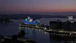 In 1988, the celebration of 200 years since the arrival of the First Fleet was organised on a large scale as the Australian Bicentenary, with many significant events taking place in all major cities.[26] Over 2.5 million people attended the event in Sydney.[29] These included street parties, concerts, including performances on the steps and forecourt of the Sydney Opera House and at many other public venues, art and literary competitions, historic re-enactments, and the opening of the Powerhouse Museum at its new location. A re-enactment of the arrival of the First Fleet took place in Sydney Harbour, with ships that had sailed from Portsmouth a year earlier taking part.[26][29]
