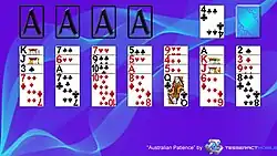Australian Patience is a patience or card solitaire using one deck of playing cards. This game is a challenging combination of Klondike and Scorpion, and is also closely related to Yukon. The object of the game is to move all of the cards to the Foundations.[1]