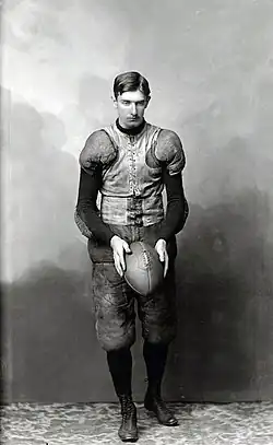 Australian football player Pat O'Dea moved to America in 1898[6] to visit his brother in Wisconsin and quickly became a legendary gridiron punter.[7] O'Dea made headlines as the "Kangaroo Kicker" in the late 1890s. Yet rarely any received any mention of developing his kicking prowess through the Australian game, let alone his previous career in Australia with the Melbourne Football Club.[8]