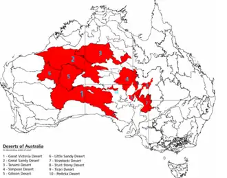 - ^ "Deserts". Geoscience Australia. Australian Government. 15 May 2014. Retrieved 13 August 2018.