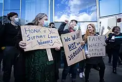 Picketing, like the Geelong library staff in 2021, is part of the universal right to peaceful protest in a free society. Its status in Australian law is uncertain, although it will not attract liability for secondary action.[144]