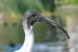 It was initially described by Georges Cuvier in 1829 as Ibis molucca.[2] It is considered part of a superspecies complex with the sacred ibis (T. aethiopicus) of Africa, and the black-headed ibis (T. melanocephalus) of Asia. Its status in the complex has vacillated over the years. Many older guidebooks referred to the bird as a species, T. molucca, until a comprehensive review of plumage patterns by Holyoak in 1970. Holyoak noted the three species' similarities and that the Australian taxon resembled T. aethiopicus in adult plumage and T. melanocephalus in juvenile plumage. He proposed that they all be considered part of a single species, T. aethiopicus. This was generally accepted by the scientific community until Lowe and Richards's assessment of plumage in 1991.[11] They again recommended the recognition of molucca at species level. This was followed by a chromosome study, which highlighted each of the three species having a different karyotype.[12] The Australian white ibis has been considered a full species by most authorities since then.[13]