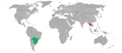 Distribution map of Australoheros facetus, green denotes the native range, red the introduced range