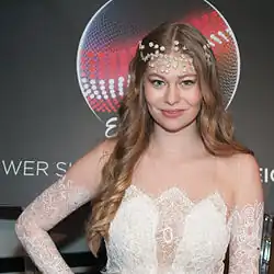 In addition to her international appearances, Zoë performed "Loin d'ici" during the ATV broadcast of the Amadeus Austrian Music Awards, which took place at the Volkstheater in Vienna on 3 April and she performed as a musical guest during the ORF eins programme Dancing Stars on 15 April.[23][24] Zoë also performed during the ORF 2 programme Guten Morgen Österreich on 15 April and performed during the Starnacht am Neusiedler See event in Podersdorf am See on 29 April which was broadcast on MDR in Germany on 30 April and on ORF 2 in Austria on 7 May.[25] On 27 April, a farewell party was held for Zoë before she travelled to Stockholm for the contest, which was hosted by Riem Hagazi.[26]