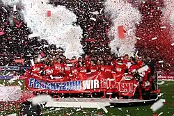 After Austria co-hosted the 2008 European Championship with Switzerland and automatically qualified, Marcel Koller's team managed to qualify for the 2016 European Championship on their own for the first time. This celebration photo was taken on 12 October 2015 after a victory against Liechtenstein.