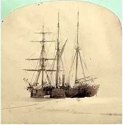 The Tegetthoff left port at Tromsø, Norway in July 1872. Soon after arriving in the Arctic Circle, the Tegetthoff became locked in pack ice and drifted for the remainder of their journey.[10] While drifting within the ice, the explorers discovered an archipelago and decided to name it after the then-current Emperor Franz Joseph. The crew later was able to dock and performed several sled expeditions on the island chain.[12]