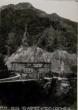 The Val di Non barrier consisted of the large Rocchetta roadblock (1860–64)[27] securing Mezzolombardo (Welschmetz) in the Non Valley against the Val di Sole if a breakthrough over the Tonale Pass succeeded.