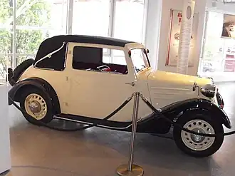 In 1948/49, Austro-Tatra built a handful of bodies for Porsche's new 356 that were at the time produced in the Austrian village of Gmünd in Carinthia.[1] Between January 1950 and March 1951, Karosserie Austro-Tatra[2] built 203 four-door cabriolets on the Type 1 platform, with fixed folding top, known as Gendarmiers, for police and fire under VW's Type 18A identifier.[3]