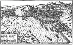 In 1595 in the Balkans, a Spanish fleet of galleys from the Kingdom of Naples and Kingdom of Sicily under Pedro de Toledo, marquis of Villafranca, sacked Patras, on the Rumelia Eyalet of the Ottoman Empire, in retaliation for Turkish raids against the Italian coasts.[24] The raid was so spectacular that Sultan Murad III discussed exterminating the Christians of Constantinople in revenge. He finally decided to order the expulsion of all unmarried Greeks from the city.[25] In the following years, Spanish fleets continued to raid the Levant waters, but large-scale naval warfare between Christians and Ottomans did not resume.[26] Instead, privateers such as Alonso de Contreras took on the role of harassing Ottoman ships.[24][26]