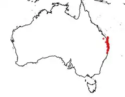 The species occurs in New South Wales and Queensland,[5] from Grafton to Fraser Island. It occurs as a common understorey plant of heathland and woodlands and also growing on sandy soils and occasionally on the margins of rainforests.[2][4]