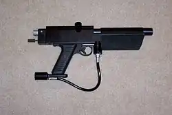 In the early 1990s the Autococker quickly rose to become one of the most popular markers used by top professional teams, used by such teams as Bob Long's original Ironmen.[2] Although heavily criticized for reliability and a number of design defects,[3] it proved to be an easy platform to work off and aftermarket parts soon appeared shortly after its inception. One of the most fundamental and important upgrades was the Palmer "Rock" low pressure regulator (LPR) to replace the troublesome stock LPR. With a variety of options appearing for parts, Belsales in the UK became the first company to build WGP-certified aftermarket cockers, called "Evolution" in 1993. Throughout the remainder of the 1990s, dozens of shops ranging from large notables such as Dave Youngblood Enterprises (Dye), Shocktech, Planet Eclipse, Belsales and FreeFlow down to small one man pro-shop operations made a business of servicing and customizing Autocockers with price tags of nearly $2000 for high-end models. A combination of performance, upgradeability and cosmetic options made it one of the top tournament markers of the 90's. Only the Automag rivaled it in popularity until electronic markers appeared. Indeed, the autococker was so ubiquitous that its barrel threading became one of the most commonly used standards on high-end markers (akin to how firearm cartridge sizes are often named for the first popular gun model or manufacturer to use them). To this day, most high-end markers, and many entry-level as well, accept barrels with "autococker threads".