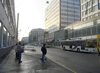 Autotalo (Finnish for "car house") is a business building in Kamppi, Helsinki, Finland, built in 1958. It is located near the Kamppi metro station in a lot bordered by the streets of Salomonkatu to the south, Fredrikinkatu to the east and Runeberginkatu to the west. The address of the building is Salomonkatu 17. The Autotalo building consists of two 12-floor towers, and it comprises the southern half of its city block. The name "Autotalo" is sometimes used to refer to the entire block, also consisting of the two separate high-rise buildings at the northern edge of the block, built at the same time as the Autotalo building.