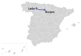 The Autovía A-231 (also known as Autovía del Camino de Santiago) is a local autovía in the community of Castile and León, Spain. It is 157 km (98 miles) long and runs from the Autovía A-66 at León to the Autovía BU-30 at Burgos, where it connects with the Autovía A-62 and the Autovía A-1. It was built between 1998 and 2003, and runs parallel to the Way of St. James (hence its name) and the N-120 road.