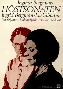 Autumn Sonata (Swedish: Höstsonaten) is a 1978 tragedy film written and directed by Ingmar Bergman, and starring Ingrid Bergman (in her final film role), Liv Ullmann and Lena Nyman. Its plot follows a celebrated classical pianist and her neglected daughter who meet for the first time in years, and chronicles their painful discussions of how they have hurt each other. It was the only collaboration between Ingrid Bergman and Ingmar Bergman (who were not related[2]).[3]