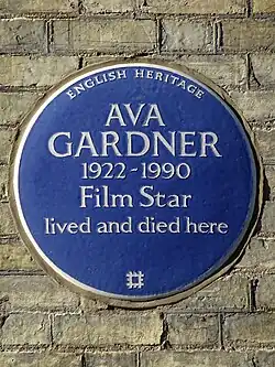 - ^ "Ava Gardner remembered with London blue plaque". Sky News. Retrieved November 15, 2023.