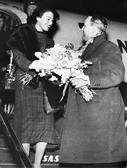 Gardner had a close friendship with Gregory Peck, with whom she starred in three films, the first one being The Great Sinner (1949).[34] Their friendship lasted the rest of Gardner's life, and, upon her death in 1990, Peck took in both her housekeeper and her dog.[35]