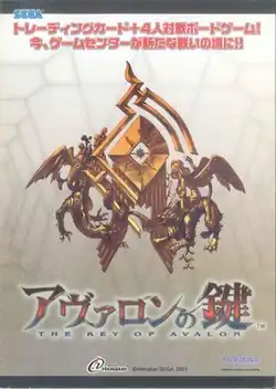 Avalon no Kagi[1], alternatively known as The Key of Avalon is an arcade game developed by Hitmaker and published by Sega on the Triforce arcade board. It is the third card arcade game by Sega, following World Club Champion Football and Mushiking: The King of Beetles.[2] It is a combination of sugoroku style board game and combat trading card game. It was followed by a sequel called The Key of Avalon 2: Eutaxy Commandment which was updated as The Key of Avalon 2.5: War of the Key.[3][4][5]