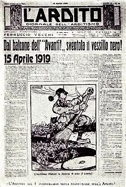 In July 1920, the headquarter of Avanti! in Rome was besieged by a group of Arditi during clashes with workers and tram drivers who were doing a strike.[25] Ugo Intini wrote: