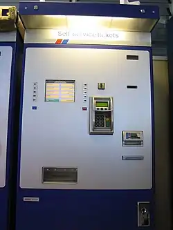 Avantix B8070 "MultiTicket" self-service ticket machine, in the Network SouthEast livery, January 2009 | |