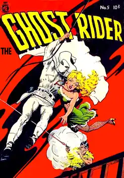 Magazine Enterprises' best-known character may be Ghost Rider, a horror-themed Western avenger created by writer Ray Krank and artist Dick Ayers in 1949. After the trademark lapsed, Ayers and others adapted it as Marvel Comics' non-horror but otherwise near-identical Western character Ghost Rider in 1967.[2]