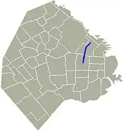 Avenida Pueyrredón is an avenue that runs through the Recoleta and Balvanera neighborhoods of Buenos Aires, Argentina, and goes from southwest to northeast, parallel to Avenida 9 de Julio. It starts at Avenida Rivadavia, and ends at Avenida Figueroa Alcorta.
