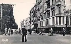 The road was originally known as the "Promenade de la Marine", a poor quality road which grew muddy in winter and dusty in summer.[4] Within thirty years after the introduction of the French protectorate of Tunisia, the town grew up to the east of the Medina. The Consulate of France, became the seat of the French residence and built in 1890–1892.[5] The avenue became the entertainment centre of the city too, and the playground for the city's elite.[6] In 1920 the Municipal Theatre was built.[7] In addition, the Cathédrale Saint-Vincent-de-Paul de Tunis was completed in 1897.[8] On the eve of the First World War, the new major street in the centre was renamed Avenue Jules-Ferry after Jules Ferry.