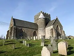 The parish church of St Andrew was described by W. G. Hoskins as 'one of the oldest and most interesting churches in Devon'. It was largely a cruciform building with a central tower and was completed in around 1250.[4] In 1942 it was said to be 'well cared for' in the church log: the following year it was almost destroyed in a raid by a group of German fighter bombers. The church was rebuilt by 1957 but subsequent structural problems led to the tower being reduced to two thirds of its original height. However the two-story porch survived, along with its richly moulded thirteenth-century doorways.