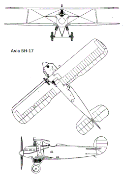 The Avia BH-17 was a biplane fighter aircraft built in Czechoslovakia in 1924. It was a development of the BH-6 and BH-8, and work on the latter aircraft was cut short in favour of this one. Operational trials in 1924 revealed performance good enough for the Czechoslovak Air Force to place an order for 24 examples. In actual service, however, the BH-17 proved unreliable and was soon withdrawn.