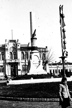 The government decided to build a monument in the empire's capital to the commemorate the first martyrs of the Ottoman military aviation. The site chosen for the memorial was a park in Istanbul's Fatih district, in front of the then city hall (currently the Istanbul Fire Department's main building), not far from the Valens Aqueduct.[3]