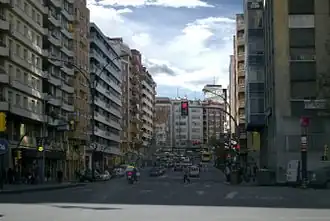 Avinguda de Catalunya (Catalan for Avenue of Catalonia) is a thoroughfare in the city of Lleida, Spain. On one end it is a prolongation of Rambla d'Aragó while on the other it meets Plaça d'Espanya and the river Segre. An extension into the Cappont neighbourhood, on the other side of the river, through the Pont de la Universitat, is underway. Most buildings are relatively recent, and include the infamous Edifici dels Sindicats, or Labor Union building, also called the "Ducados building" because of its alleged resemblance to a Ducados blue cigarette box. Demonstrations in Lleida usually go through Avinguda de Catalunya. The Lleida coach station, a rather decayed infrastructure, lies on one of the ends of the avenue as of 2010. It will be replaced by a newer structure near the Lleida-Pirineus railway station.