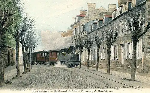 The Avranches–Saint-James tramway was a 17 kilometres (11 miles) metre gauge railway on the English Channel in the Manche département in the Normandy region of France, which was put into service on 29 July 1901 and operated until 31 December 1933.