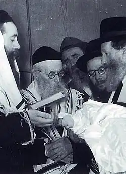 - ^ According to the testimony of Moshe Sheinfeld, Yalkut Da’at Torah, Ikveta d’Meshicha, p. 68. See also the article “Why Did God Do This? Haredi Responses to the Holocaust,” by Menachem Friedman, in: The Holocaust in Jewish History, p. 591.