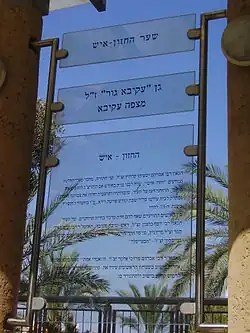 - ^ Today, Chazon Ish Street (Bnei Brak). The site houses Talmud Torah Tashbar, named after the Chazon Ish.
