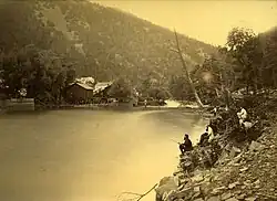 An axe-finishing shop at Thomas Mill in Bellefonte was established in 1832 through partnership with Franklin B. Smith, but this venture failed after only a year. Its failure caused a split between the brothers, with Harvey assuming the debts.[6] Later, a finishing plant was added near Paradise (now Fisherman's Paradise; lower left on map above).[7]