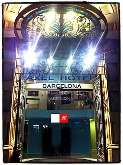 Axel Hotel Barcelona is the first hotel of the chain. It was opened in July 2003 in Gaixample District, Barcelona and rated in the four-star category.[6] The hotel is located in a chic building of the XIX century and has 101 rooms.[7] In 2015, another hotel, called Two Hotel by Axel, was opened in the southern part of the Gaixample District in Barcelona.[8]