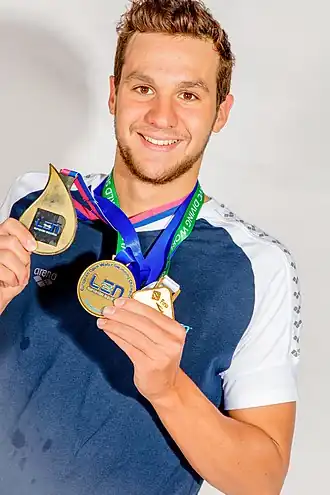 He will be highly disappointed about his 4th place[7] on 25 km (16 mi) at the World Championships in Kazan (Russia), and especially to its 12th place in the 10 km (6.2 mi), which, this last one, earned him a non-selection of the French Swimming Federation, to go to represent France at the Rio Olympic Games (Brazil) in 2016.[8] But his year has been full of medals, he ended the 2015 season : at the first place of the French Open Water Cup National Ranking (with 8 stages wins in 11 appearances) and at the 1st place of the French Open Water Swimmers National Ranking. He even gets a number of points in the French Cup, never obtained at least 2005, and the national ranking of open water swimmers, a number of points ever obtained at least 2012.