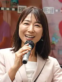 She was born on July 6, 1978[1] in Hiroshima Prefecture and attended Kyoritsu Women's Junior College, graduating in 1999. She had studied abroad in Australia. During her career, she worked as a freelance writer for multiple TV and radio information programs before her 2013 election to the Tokyo Metropolitan Assembly. In 2014, during a debate about childrearing, she was heckled by an unnamed member.[2] In 2019, she was elected to the House of Councillors.[3][4][5]