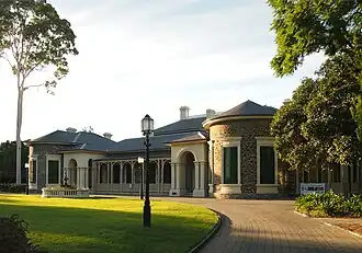 Plans for the two-storey mansion, which for the greater part of its existence was named Austral House,[1] were developed in 1846 for William Paxton, an Adelaide chemist. It is constructed of local bluestone and is Regency period in style, thought to have been designed by George Strickland Kingston, who interpreted the work of Robert Kerr, a leading architect of the period in Britain.[2][3]