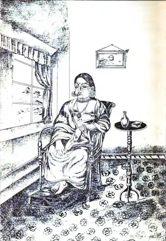 After the death of Thiruvattar Ammachi, his first consort, the Maharajah married again in 1862 Kalyanikutty Amma of Mathruppillil, a prestigious family of Nadavarambu, Irinjalakuda, Thrissur in the neighbouring state of Cochin. She was born in 1839 as the only daughter of Nadavarambathu Kunju Krishna Menon, a former Dewan of Cochin and his wife Mathruppillil Lakshmi Amma. She was first married to Punnakkal Easwara Pillai Vicharippukar. Kalyanikutty Amma was a woman of renowned beauty and the first commission given to Raja Ravi Varma by Ayilyam Thirunal was for her portrait. In 1865 after their marriage, she was adopted by the Maharajah into the Nagercoil Ammaveedu after which her full title became Nagercoil Ammachi Panapillai Amma Srimathi Lakshmi Pillai Kalyanikutty Pillai Ammachi. Nagercoil Ammachi was also a scholar of Sanskrit and a poet in her own right, having authored Rasa Krida, Satya Panchakam, Pativrataya Panchakam, Ambarishacharitram and other works. She died in 1909. The Maharajah had no children of his own from either marriage. However along with his consort he adopted two nieces and nephew of hers, one niece Panapillai Ananthalakshmi Pillai Kochamma, who married in 1879 the Maharajah's nephew Moolam Thirunal, the other niece married to a Thirumulpadu and a son Nagercoil Achyuthan Thampi. The Maharajah was also a poet having authored the Meenaketanacharitram and Bhasha Sakuntalam.
