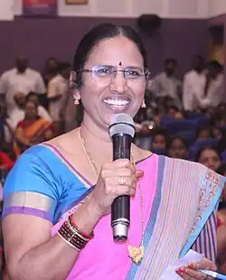 Ayinampudi Srilakshmi is a Telugu poet and writer. She has been serving as an announcer at All India Radio Hyderabad for over two and a half decades. Srilakshmi has authored numerous articles, books, and poems. She has also created several documentaries.[1] She has hosted various programs on cinema and conducted interviews with renowned personalities on All India Radio.[2] In 2020, she received the Telangana State Excellence Award for Women-2020 from the Government of Telangana for her contribution to literature.[3]