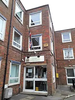 When Aylesbury Borough Council was abolished in 1974, the town became an unparished area, directly administered by Aylesbury Vale District Council. A civil parish of Aylesbury was re-established in 2001, with its council taking the name Aylesbury Town Council.[21] In 2007 Aylesbury Town Council bought an existing office building at 5 Church Street, converting it to become their offices and meeting place and renaming it Town Hall.[22][1]