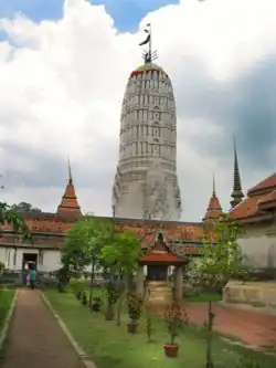 In 1767, the city was destroyed by the Burmese army, resulting in the collapse of the kingdom. The ruins of the old city are preserved in the Ayutthaya historical park,[8] which is recognised internationally as a UNESCO World Heritage Site. The ruins, characterised by the prang (reliquary towers) and gigantic monasteries, give an idea of the city's past splendour.[9] Modern Ayutthaya was refounded a few kilometres to the east.