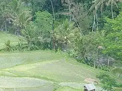 The erosion rate is relatively low in the rice field area upstream and in the middle, due to flatter slopes and good land conservation techniques.[2]