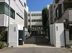 The school is located in the Azabu district (the namesake of the school name) in the Minato Ward, and the nearest train station is Hiroo Station (Tokyo Metro Hibiya Line). The Azabu district is mostly residential, and the main gate of the school is so narrow that one may not notice that there is a large school there. Admission to Azabu being so competitive, "Azabu’s narrow gate" signifies how difficult it is to secure a seat at Azabu.