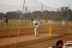 The ground hosts twenty-two cricket pitches.[10] The cricket pitches at the ground have produced many international cricketers. On 20 November 2013, Prithvi Shaw created history with 546 runs and in 1987 Sachin Tendulkar and Vinod Kambli shared a huge 664 run record partnership during a Harris Shield school match at Azad Maidan.[11] In 2009, Sarfaraz Khan scored 439 runs in a Harris Shield match at Azad Maidan.[12] Azad Maidan plays host to a number of cricket matches throughout the year, including Inter-School and Club matches.