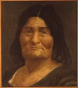 Around 1870, Andrew Falkenshield, a Danish immigrant and former photographer, did an oil painting of Betsey. It is not known whether Betsey sat for the portrait or if he worked from a photograph.[43] At some point, Judge Charles E. Flandrau acquired the painting, which was donated in 1902 to the Minnesota Historical Society.[5]
