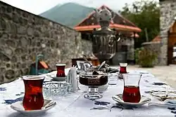 Black tea is a popular drink in Azerbaijan. Azerbaijani people usually prefer tea made in a samovar. Jam (Murabba) is often added to the tea as a sweetener.